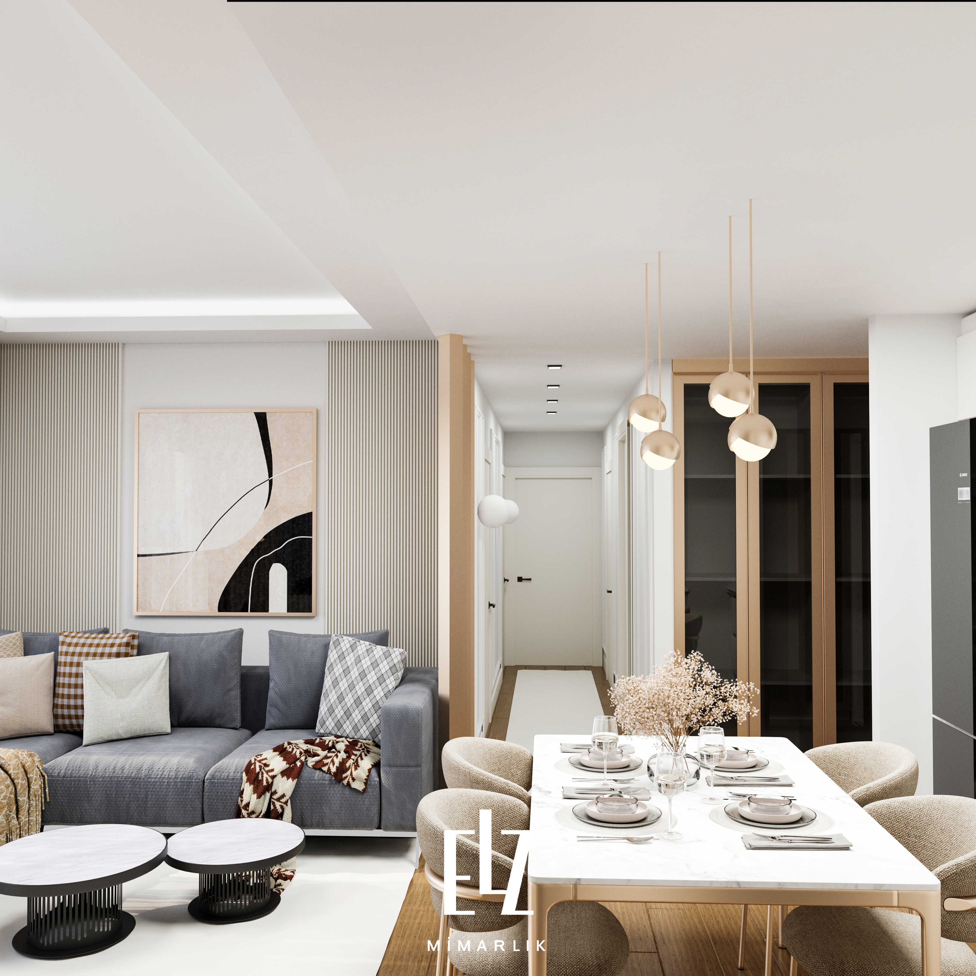 INN İstanbul Evleri projemizde, yüksek kaliteli malzemeler kullanarak alanı maksimum verimlilikle değerlendirdik ve fonksiyonel, şık bir tasarım ortaya koyduk. Yaşam alanlarını daha kullanışlı ve estetik hale getirmek için her detayı titizlikle ele aldık. Konfor ve zarafeti bir araya getiren bu proje, sizlere en iyi yaşam deneyimini sunmayı amaçlıyor.